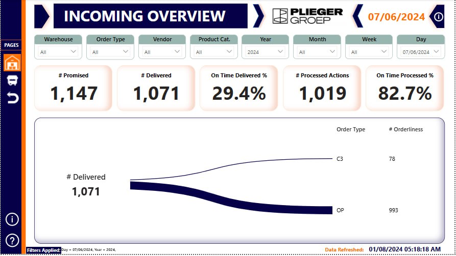 - Designed a logistics dashboard to monitor key metrics such as incoming goods, inventory levels, and delivery timelines.