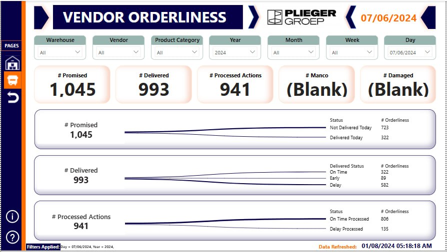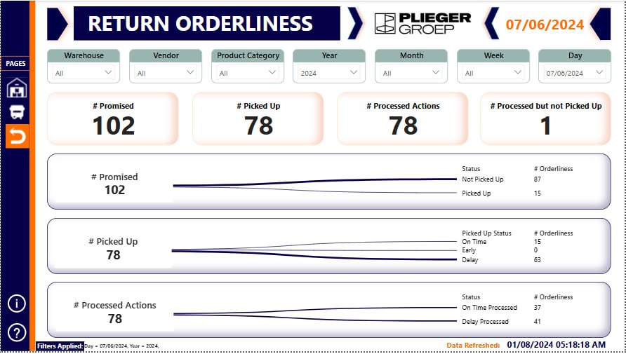 - Promised: The total number of orders promised by vendors and returns for the day. It sets the benchmark for expected deliveries and processing.