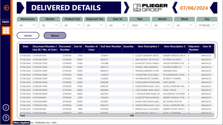 - Delivered: The total number of orders actually delivered, combining both vendor and return orders. It helps in assessing the fulfillment rate.