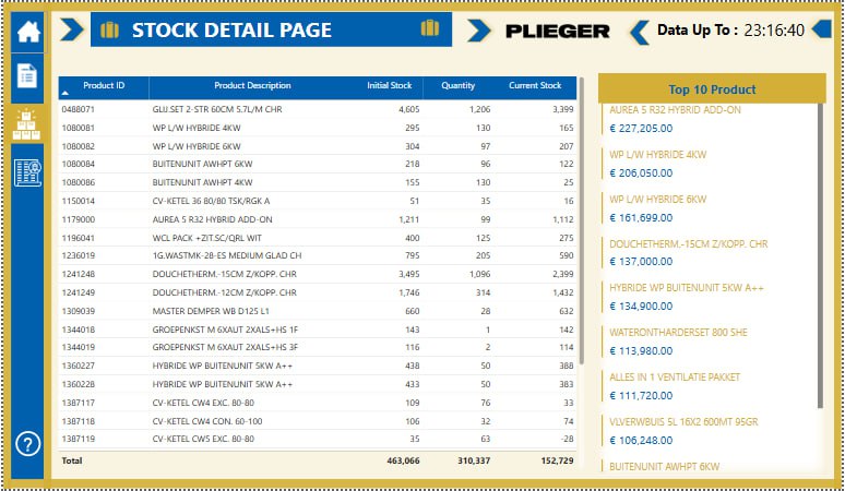 - Custom Visualizations: Used a cylindrical gauge chart for inventory tracking.